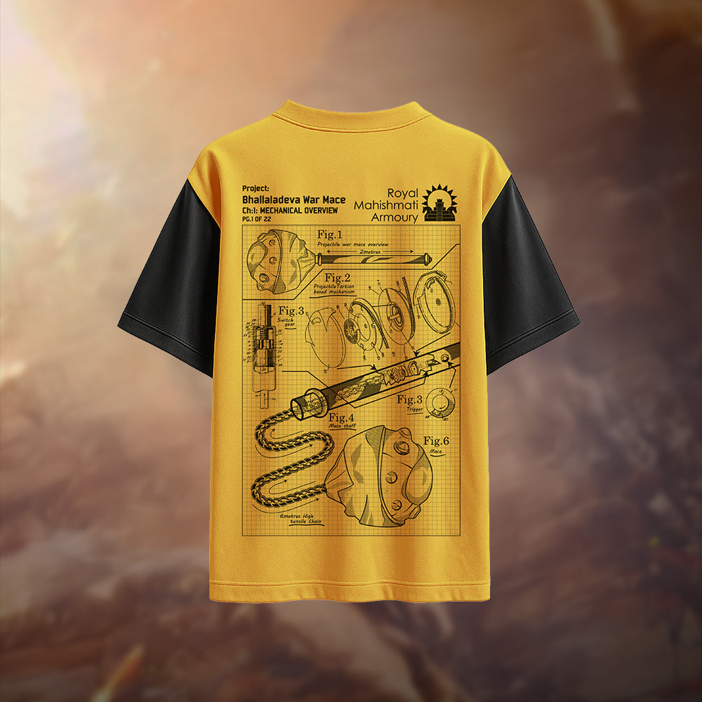 Step into the world of Mahishmati with this exclusive Bhallaladeva War Mace Mechanism T-shirt - a stunning tribute to the legendary weapon wielded by the mighty Bhallaladeva from the Baahubali saga.