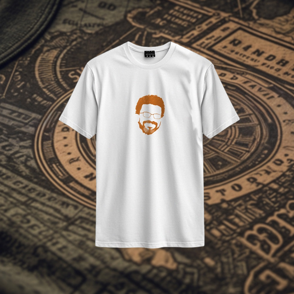 This limited-edition T-shirt blends minimal design with emotional storytelling - featuring a subtle portrait of the creator on the front and a beautifully scripted lineup of his iconic films on the back.