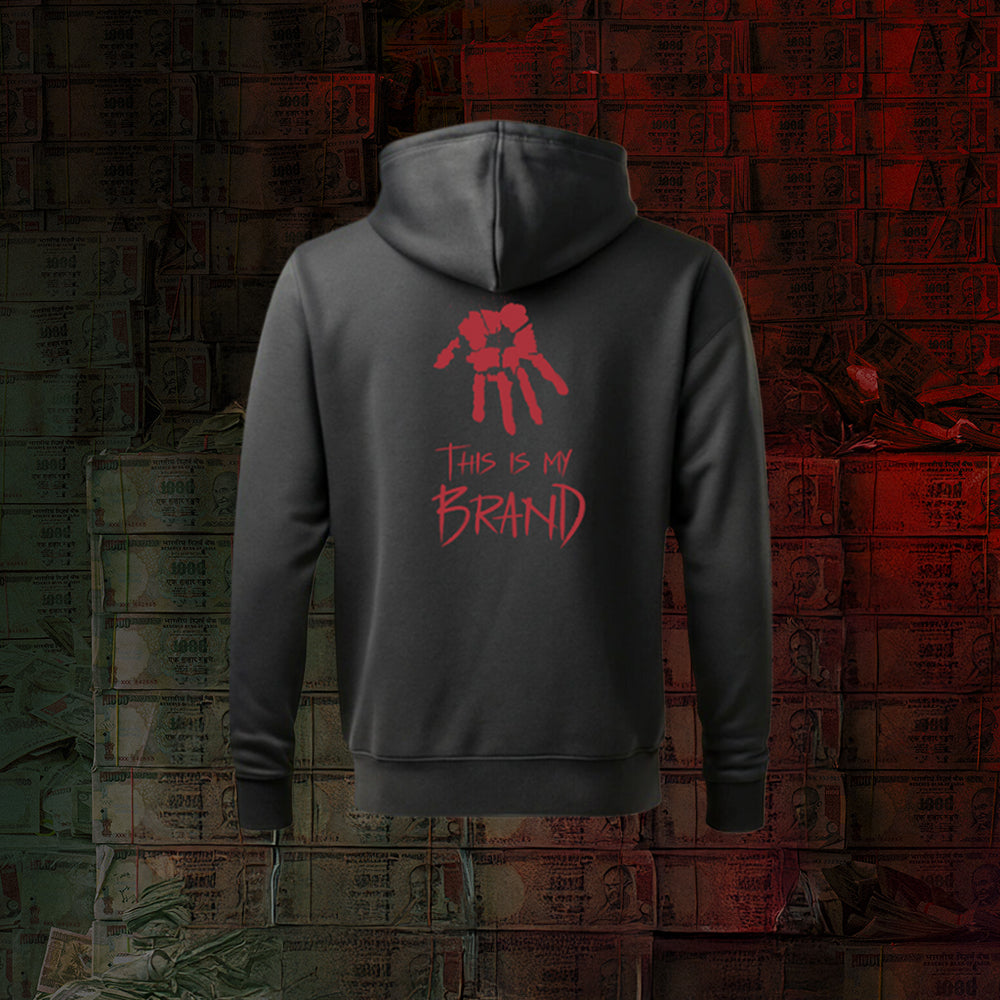 The front features a minimal yet striking Pushpa 2 emblem in red, while the back steals the show with a fierce handprint graphic and the bold text “This Is My Brand” - a statement that defines dominance and individuality. Crafted for those who want to wear their fandom with pride.
